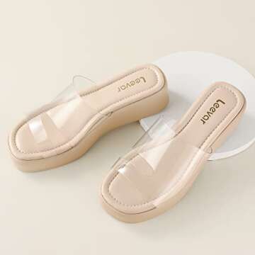 Show more Introducing the Leevar Platform Sandals for Women, where comfort meets style in a blissful fusion. Crafted with thick memory foam padding, these super comfy wedge sandals guarantee a soft and enjoyable fit, allowing your feet to feel pampered no matter the occasion. The elastic slide band elegantly cradles your instep, providing the perfect balance of support and flexibility. Designed for ultimate convenience, these platform slides revolutionize the way you experience casual footwear, making them a must-have addition to your summer wardrobe.