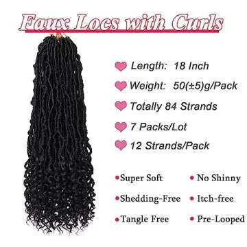 Leeven 7 Packs Faux Locs With Curly Ends 18 Inch Pre-looped Goddess Locs Crochet Hair 84 Strands Natural Black Crochet Bohemian Soft Locs Braiding Hair Extensions With Curls for Women 1B#