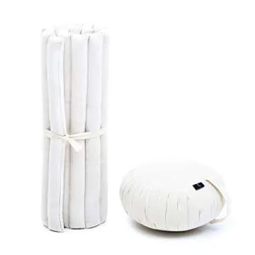 Show moreExperience unparalleled comfort and support during your meditation and yoga practices with the Leewadee Meditation Cushion Set. This thoughtfully crafted set features a round zafu meditation pillow and a square roll-up zabuton meditation mat, designed to elevate your floor seating experience. The zafu pillow measures 13 x 13 x 6 inches, providing the perfect height and support, while the zabuton mat spans 28 x 28 inches, ensuring ample space for relaxation and stability. Each cushion is filled with natural kapok, a sustainable fiber known for its breathability and softness, allowing you to sit with ease for extended periods.
