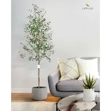 Leflos Leflos Artificial Olive Tree Indoor 7ft, Large Fake Olive Tree in Stable Pot for Home Indoor Decor, Tropical Faux Potted Silk Plant with Realistic Trunk, Branch and Plump Olives, 2Pack