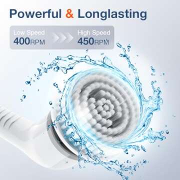 Show more The Lefree 8-in-1 Shower Scrubber revolutionizes your cleaning experience, blending innovative technology with user-friendly designs. This electric spin scrubber features two adjustable spin speeds (400 RPM for daily cleaning and 450 RPM for intensive scrubbing), allowing you to tackle any cleaning challenge with ease. Say goodbye to tedious scrubbing sessions; with just a click, you can switch speeds based on your cleaning needs!