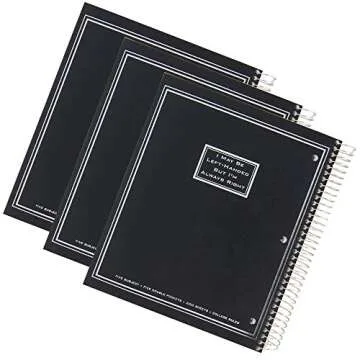 This set includes three meticulously designed notebooks, ensuring you always have a reliable space to express your thoughts. Each notebook features five sections with five double pockets and 200 college-ruled sheets that easily tear out for use in any 3-ring binder. Measuring a convenient 9.5" x 11" x 2" deep, these notebooks are as spacious as they are portable, perfectly tailored for students or professionals alike.