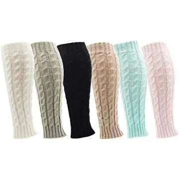Trendy Knee High Cable Knit Leg Warmers for Women - 6 Pairs