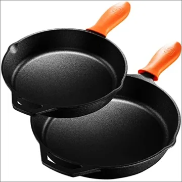 Whether you're preparing mouth-watering steak or delicate scrambled eggs, the added features of an extra-long handle and included silicone hot sleeves make handling these skillets safe and comfortable. Plus, the expertly designed tempered glass lid allows you to monitor your cooking progress without lifting the lid, adding even more functionality. Embrace a cooking experience that only improves with time as you build your unique seasoning on this treasured kitchen staple.