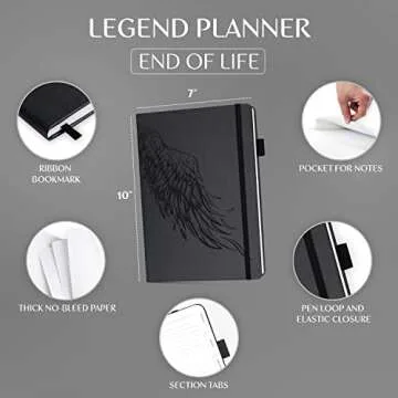 Show more The Legend End of Life Planner is your essential companion for navigating the delicate process of end-of-life planning. This comprehensive workbook organizes all essential details, enabling you to prepare your loved ones for what lies ahead. With its neatly structured format, this planner encompasses 16 clearly defined sections, each designed with easy-to-complete prompts that ensure nothing is overlooked. From documenting vital medical information to outlining property and financial assets, this planner is specifically tailored to cater to your individual needs. Measuring a spacious 7x10 inches, it provides ample space to write down everything important, making it an invaluable resource during a challenging time.