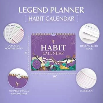 Show more Master the Art of Habit Building with the Legend Habit Calendar, a beautifully crafted tool that transforms the daunting task of habit formation into an enjoyable and rewarding journey. Perfectly sized at 10x8" and designed for use over two full years, this undated habit tracker allows you to start your habit-building journey at any time without losing momentum. With its engaging lavender color, you won’t only track habits; you’ll add a touch of style to your routine.