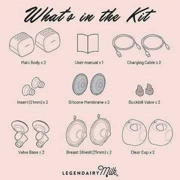 The Imani i2 comes fully equipped for a seamless pumping experience. It includes two powerful motors, two 7 oz/200 ml clear plastic cups, silicone membranes, and breast shields, along with charging cables for your convenience. With an easy setup that takes less than a minute, it is perfect for those with busy lifestyles. Built to operate under 40 dBs, its whisper-quiet motor ensures discretion during use, even while nursing your baby or working from home.