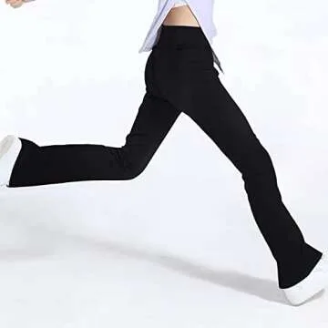 Leggings for Girls Size 14-16 Years Old Black High Waist Cross Bootleg Pants with 2 Pockets Warm for Teens Fitness Jog