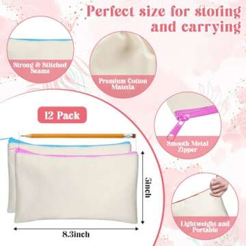 Legigo 12 Pack Blank DIY Craft Bag Canvas Pencil Case for All Needs