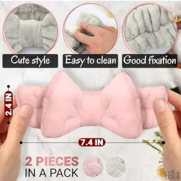 LEGLO 2Pcs Hairband for Women - Bow Headbands for Women's Hair Spa, Makeup Headband for Washing Face, Cosmetic Headband, Shower Hair Bands for Gym (Pink, Gray)