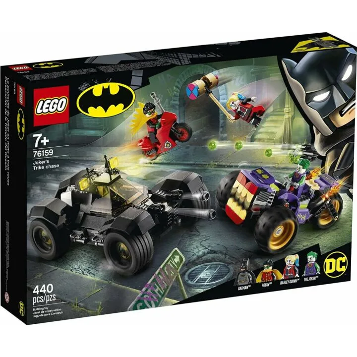 Amazon.com presents: LEGO DC Batman Joker's Trike Chase 76159 Super-Hero Cars and Motorcycle Playset – a thrilling, action-packed toy set perfect for fans of Batman, Robin, The Joker, and Harley Quinn. This playset comes with 440 pieces, providing endless opportunities for creativity and imaginative play. With its colorful and detailed design, this set allows kids to recreate their favorite scenes from the DC universe or come up with their own heroic adventures. It includes a mini shooting Batmobile, adding...