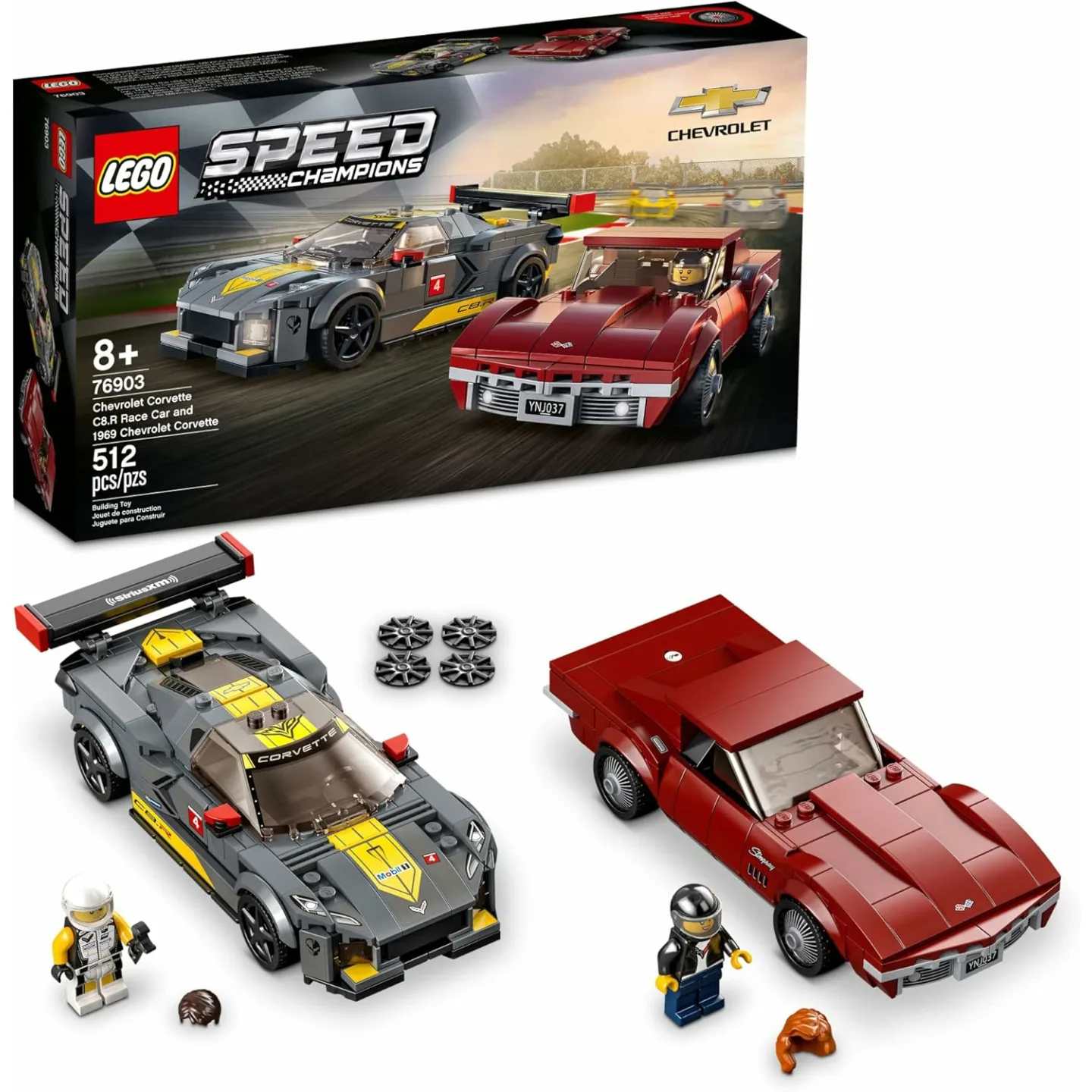 LEGO Speed Champions Chevrolet Corvette C8.R & 1969 Corvette 76903 Kit - 512 Pieces