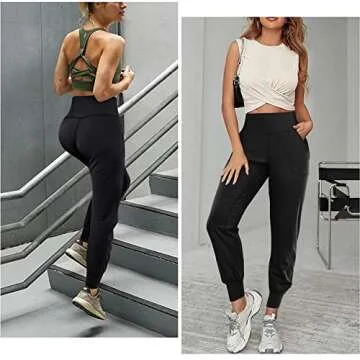LEINIDINA Women’s Jogger Pants Active High Waisted Sweatpants with Pockets Tapered Casual Lounge Pants Loose Track Cuff Leggings (Black, Large)