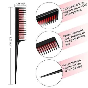 Show moreIntroducing the Leinuosen 3 Pcs Triple Teasing Comb Rat Tail Tool, the ultimate accessory for women seeking to elevate their hairstyle effortlessly. Designed meticulously for those with thin, fine, and normal hair types, this amazing tool features a unique comb structure with three rows of teeth, designed to provide a whopping three times the volume to your hair. Whether you are backcombing, teasing, sectioning, or finishing styles, this versatile comb is your go-to for creating stunning looks. The multi-length tooth design coupled with a convenient tail comb means you can create precise partings in no time, making this comb not only functional but also aesthetically pleasing with its vibrant color options including Black and Red, Black and Blue, and Pink and Black.