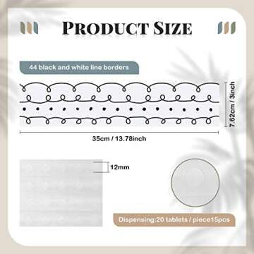 Show more Transform your classroom or any space into a vibrant and inviting environment with the Leinuosen 44 Pcs Squiggles and Dots Die Cut Border Trim Bulletin Board Border. This stylish bulletin board border set seamlessly combines functionality with flair, featuring an array of black and white designs that playfully enhance your decorations. Each border strip measures approximately 3 x 13.78 inches and can be used to create a total length of about 50.5 feet, offering great versatility for limitless creativity. Ideal for both young and older students, this border trim helps to personalize and beautify any hallway, classroom, or home study area, making learning spaces more engaging and aesthetically appealing.