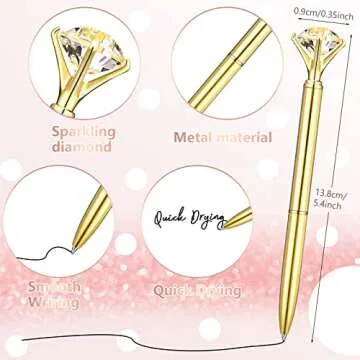 Show moreIntroducing the highly versatile **Leinuosen 50 Pcs Bulk Diamond Pens** — the perfect blend of elegance and functionality. Crafted from reliable metal, these stunning ballpoint pens are not only sturdy but also designed to impress with their crystal diamond accents on top. Ideal for a variety of events, including bridal showers and weddings, these pens promise to add a touch of sophistication to your writing experience. Each pen features smooth black ink that dries quickly, ensuring clear lines that won’t smudge or fade. Say goodbye to boring stationery and illuminate your notes with these gorgeous, blingy pens that are sure to capture everyone’s attention!