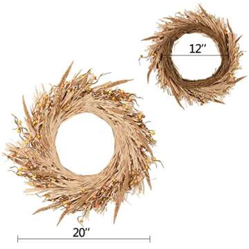 Leipal 20 Inch Autumn Wheat Wreath - Handmade Fall Decor for Front Door