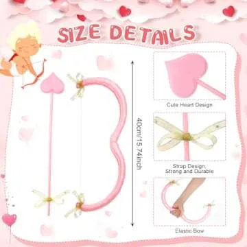 Leitee Cupid Bow and Arrow Valentines Cupid Costume Accessories Women Cosplay Supply Valentines Day Adult(Pink)