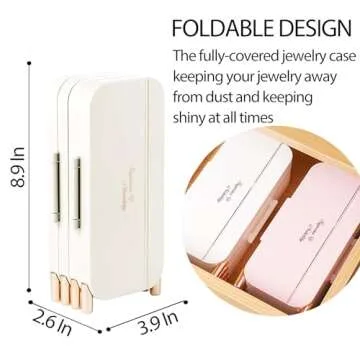Lejesth Foldable Jewelry Organizer Box with Mirror, 4-Layer Dustproof Earring Necklace and Rings Organizer, Space saving Jewelry box for for Women (White)