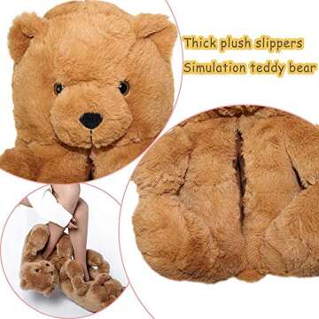 LELEBEAR Teddy Bear Slippers, Plush Animal Slippers Winter Warm Shoes (Red)