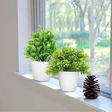 LELEE Artificial Potted Plants Mini Fake Plants with Pots, 3 Pack Medium Eucalyptus Potted Faux Decorative Grass Plant with White Plastic Pot for Home Decor, Indoor, Office, Desk, Table Decoration