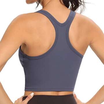 Lemedy Women Racerback Sports Bra Removable Padded Workout Yoga Crop Tank Top (Navy Blue, S)