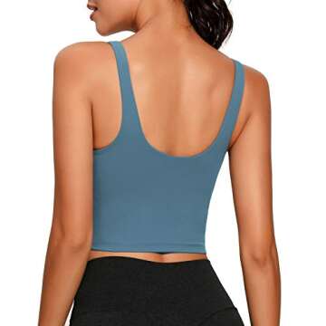 Lemedy Women Sports Bra Longline Crop Tank Top Padded Workout Running Yoga (S, Blue)