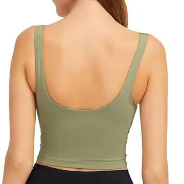 Lemedy Women Sports Bra Longline Crop Tank Top Padded Workout Running Yoga (M, Light Olive)