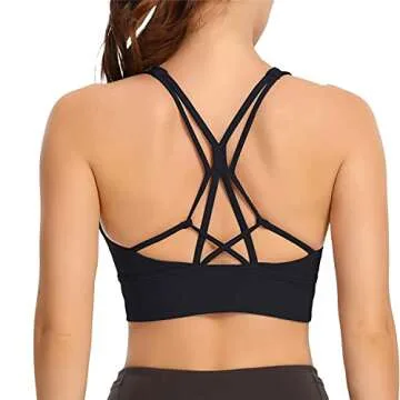 Lemedy Women Strappy Sports Bras Padded Medium Support Yoga Workout Tank Top (M, Black)