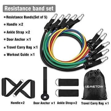 LEMETOW Resistance Bands Set (11pcs), Workout Bands Door Anchor, Handles, Waterproof Carry Bag, Legs Ankle Straps for Resistance Training, Physical Therapy, Home Workouts, Ankle Straps
