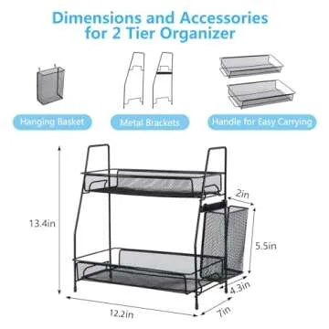 Designed with space-saving efficiency in mind, this two-layer rack (measuring 12.2 x 7 x 13.4 inches) can expertly store everything from spices and lotions to makeup essentials and toothbrush holders. It's not only perfect for your bathroom or kitchen but can also be used in offices or any room in your home, offering a neat and tidy aesthetic wherever it sits.