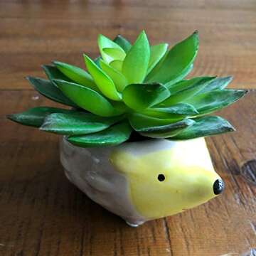Show moreIntroducing the charming Lemon Hero Cute Yellow Hedgehog Succulent and Cactus Planter by Exquisite Succulents! This delightful handcrafted ceramic planter is not just a home for your beloved plants, but also an adorable conversation starter that brings warmth and personality to any space. With its vibrant yellow hue and precious hedgehog design, it’s perfect for adding a whimsical touch to your office, dorm room, or even car. Measuring 6 x 3 x 2 inches, it’s the ideal size for succulents and cacti—helping you cultivate your very own green haven without overtaking your space. Plus, it features a drainage hole to ensure your plant friends thrive with the right amount of moisture.