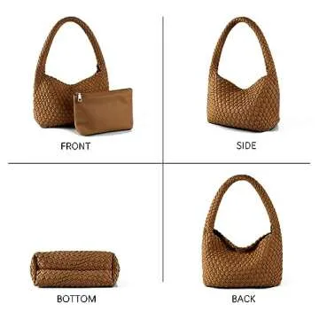 LEMONEYE Women's Brown Woven Leather Tote Vegan Shoulder Bag Fashion Tote Bag for Women