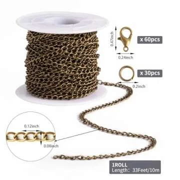 Lemonkey 33 Feet Metal Bronze Necklace Chains Curb Links Chains Bulk for Jewelry Making DIY Craft Kit with Lobster Clasps Jump Rings