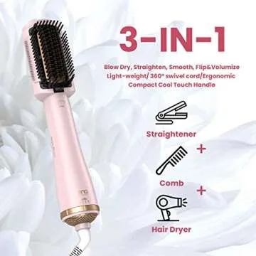 Show moreTransform your hair care routine with the LENA Hair Straightener Brush Dryer PRO, the ultimate multi-functional styling tool that allows you to blow dry, straighten, smooth, flip, and volumize your hair—all in one easy step! This revolutionary hair dryer brush styler caters specifically to long and medium-length hair, ensuring you achieve salon-quality results from wet to styled in half the time. With its patented design and advanced features, just towel dry your hair until it's around 70%-80% damp before you start and revel in the fantastic styles you will be able to create effortlessly. Note that the LENA Airplusstyler is not meant to replace a traditional hair dryer.
