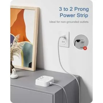 Why You Will Love This Product: The LENCENT 2 Prong Power Strip doesn't just cater to your charging needs; it elevates your experience with cutting-edge safety features and intelligent design. You will appreciate the peace of mind that comes with its CE certification, fire-resistant casing, and the knowledge that your family and devices are protected. Enjoy the simplicity of a clutter-free charging station that meets all your electronic demands while enhancing your living space.