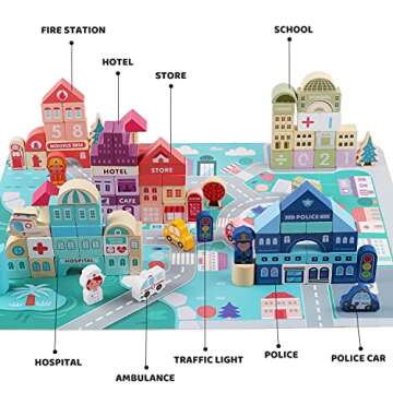 LENNYSTONE Wooden Building Blocks - City Construction Set for Kids