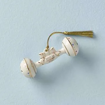 Show moreCelebrate your little one's first Christmas with the exquisite Lenox 2020 Baby's First Christmas Rattle Ornament. Crafted from durable yet delicate porcelain, this charming ornament combines elegance with a heartwarming sentiment, making it a perfect addition to your holiday decor. With its beautifully detailed design and luminous ivory finish, this piece captures the magical essence of childhood brilliance while standing the test of time as a treasured keepsake. Plus, at just 0.25 LB, it’s lightweight enough to hang on any branch, adding a unique touch to your Christmas tree.