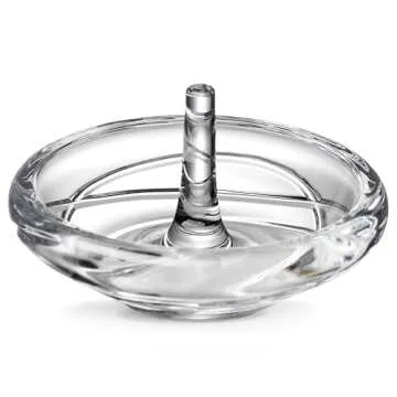 Measuring a convenient 3.5 inches in diameter, the ring holder is expertly crafted from durable and versatile glass crystal, ensuring that it not only looks magnificent but will stand the test of time. Its clear construction allows you to see your jewelry displayed beautifully, providing a sense of luxury in its simplicity. Whether you use it for your rings, dainty earrings, or delicate necklaces, your jewelry will remain organized and within easy reach.