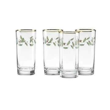 Lenox 849605 Holiday 4-Piece Highball Glass Set, Christmas Dinnerware, Hosting