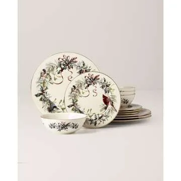 Lenox 894540 Winter Greetings 12-Piece Dinnerware Set, Red & Green, 12 Count, Christmas, Holiday Hosting