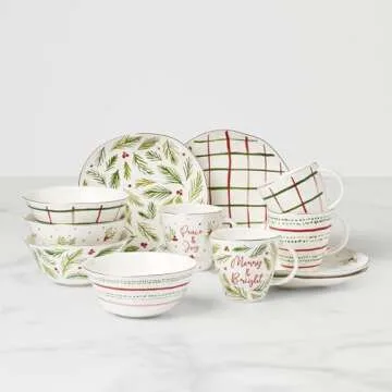 Lenox 895258 Bayberry 12-Piece Dessert Set, Christmas Drinkware, Holiday Hosting