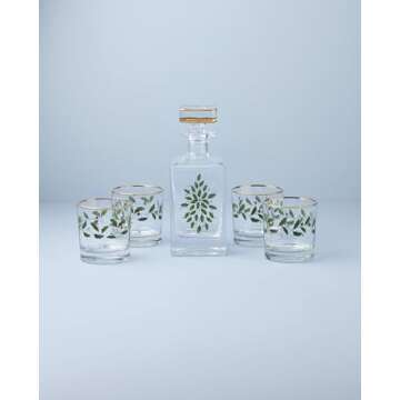 Lenox 896709 Holiday 5-Piece Decanter & Whiskey Glass Set, Christmas Dinnerware, Hosting