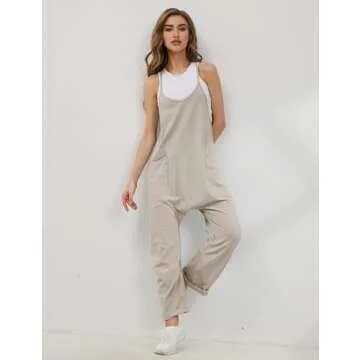 Lentta Women's Causal Jumpsuits V Neck Sleeveless Harem Overalls Stretchy Adjustable Strap Romper with Pockets(LightKhaki-XXL)