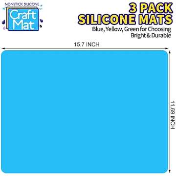 Show more The LEOBRO Silicone Mats are the ideal solution for any craft enthusiast looking for an easy and efficient way to manage their projects. This set includes three spacious silicone mats measuring 15.7" x 11.7", allowing you to tackle various messy craft ventures without hassle. Designed in vibrant blue, yellow, and green, these mats not only bring a cheerful touch to your workspace but also make it simpler to organize your materials and see your projects clearly. With their durable design and versatile applications, these mats will serve you well across various crafting endeavors.