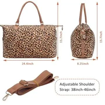 Our leopard print weekend travel bag is not just about style; it’s built for everyday use. The sturdy and tear-resistant fabric ensures it withstands daily rigors, while smooth zippers guarantee easy access to your items. Plus, the added feature of an adjustable shoulder strap enhances its functionality, allowing for comfortable carrying options. Whether you are going on a spontaneous weekend escape or heading to the gym, this bag will be your go-to travel companion!