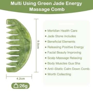 Show moreExperience the ultimate in relaxation and scalp rejuvenation with the LEOSENSE Scalp Massage Comb. Expertly handcrafted from green jade, this stunning comb serves not only as a scalp massager but as a multi-functional tool designed to enhance both your beauty routine and overall well-being. Scientific research suggests that jade stone, rich in beneficial micro-elements, effectively promotes blood circulation and skin rejuvenation, far surpassing traditional plastic and metal options. Its compact size (9cm long, 4.2cm wide) makes it perfect for both at-home and travel use, delivering soothing relief whenever you need it.