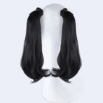 LesafeV 2pcs Ponytail Wig Tie up-Long Straight Hair Extension Cosplay Twin-tail Cute Pony Tail Pig Tails Hairstyle 18" Off Black