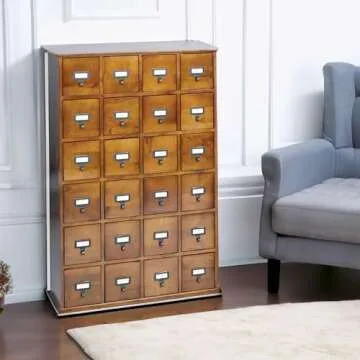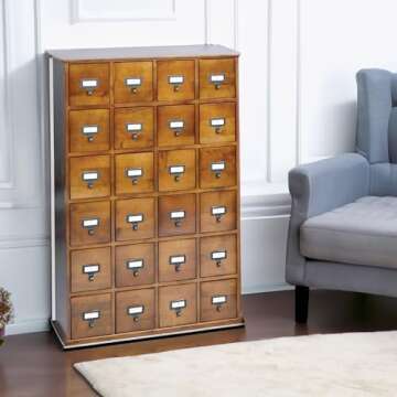 Leslie Dame Solid Oak Library Card File Media Cabinet, 24 Drawers, Walnut