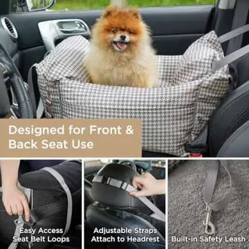 Lesure Small Dog Car Seat for Small Dogs - Waterproof Dog Booster Seat for Car with Storage Pockets and Clip-On Safety Leash and Thickened Memory Foam Filling, Pet Travel Carrier Bed Grey Houndstooth